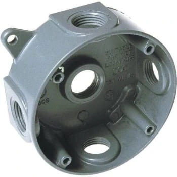 - BELL N3R Aluminum Gray Round Wthrproof Outdoor Elec Box 5 Outlet W/ 4 Plugs