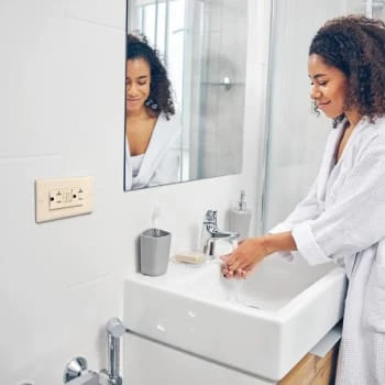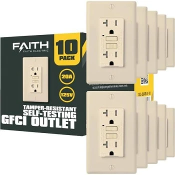 - Faith 20-Amp 125-Volt GFCI Duplex Outlet, Tamper Resistant, Ivory