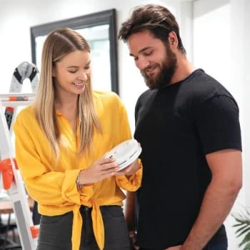 - Alarm interconnects with RF-SM-ACDC (sold separately) and additional RF-SM-DC units via radio frequency, providing an interconnected system without the inconvenience of rewiring your home