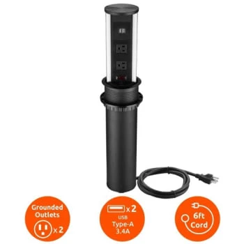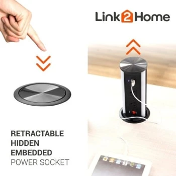- Clean Look: Fully Retractable With A Black Anodized Finish, The Pop-Up Socket Lets You Add Power In A Sophisticated And Unobtrusive Way. Heavy-Duty Aluminum Construction Built To Last!