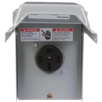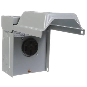 - Enclosed receptacle is ideal for use at camp grounds, with portable generators or any other outdoor application requiring a 50 Amp service