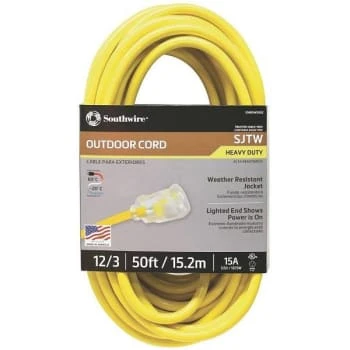 - Southwire 50 Ft 12/3 SJTW Hi-Visibility Outdoor Heavy-Duty Extension Cord