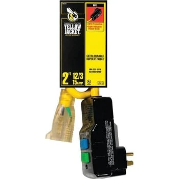 - Yellow Jacket 2′ 12/3 SJTW Right Angle GFCI Extension Cord W/ Power Light Plug
